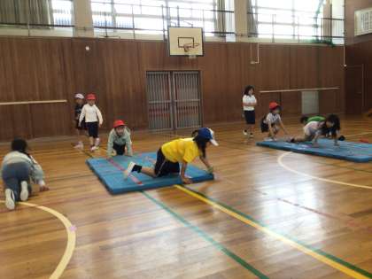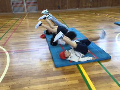 体育でマット遊びをしました。