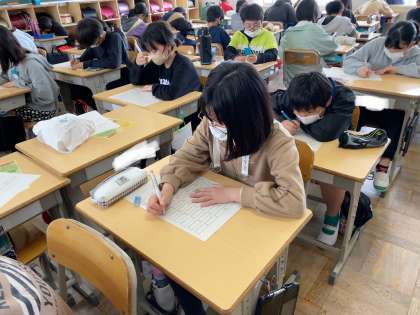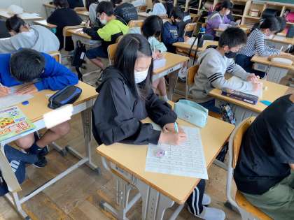 1組では、明日の一斉テストに向けてのプレテストを行いました。