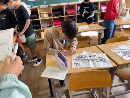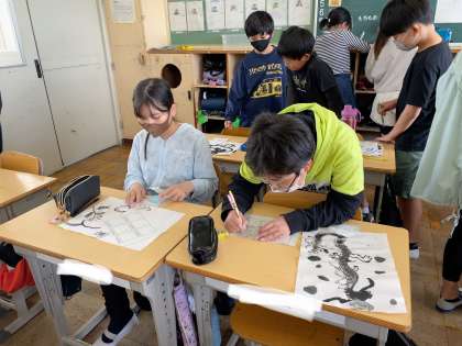 墨絵の鑑賞会をしました。次回は絵の具セットを使いますので準備をお願いします。