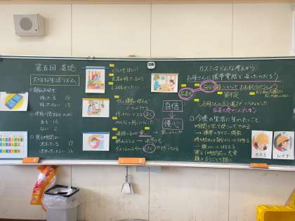 携帯電話によって生活リズムが崩れてしまった主人公から、携帯電話との正しい付き合い方や、生活リズムを崩さないために大切なことについて考えました。授業の振り返りを次回の学年通信に掲載しますので、ご家庭でも話題に取り上げていただけるとありがたいです。