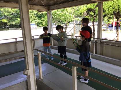 楽しく学校の中を探検していました。