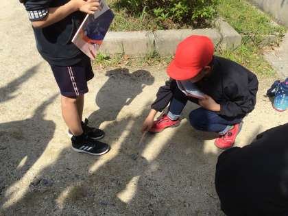 春の生き物を観察しに行きました。観察した生き物を、ノートに記録しました。