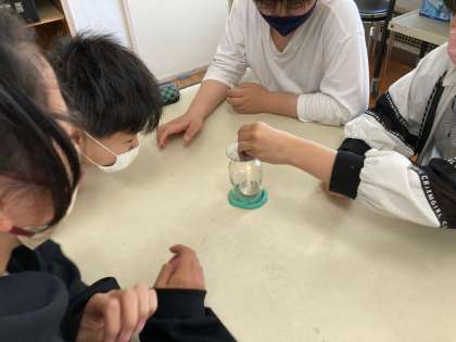 6年理科 ものの燃え方 公開日 2023/05/17 更新日 2023/05/17 各学年から ふたをしめたりしめなかったり、班で工夫して実験をして、ろうそくの火が消えたり、燃え続けたりする条件を探りました。