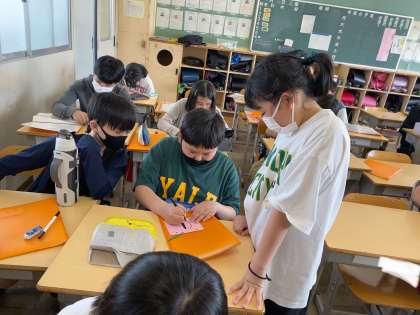 縦割り活動の準備を進めています。今日は、1年生につけてもらう名札を準備しました。