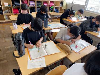 縦割り活動の準備を進めています。今日は、1年生につけてもらう名札を準備しました。