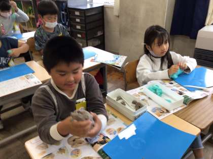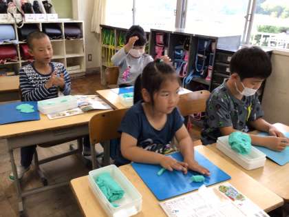 「にぎにぎねんど」 手で握ったり、ちぎったりして楽しみました。