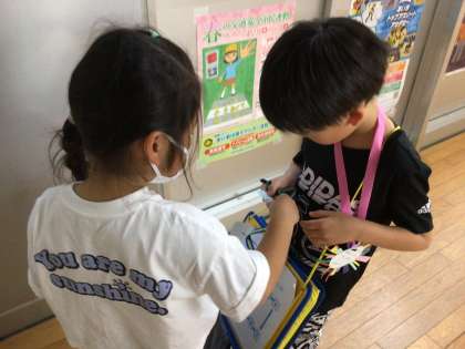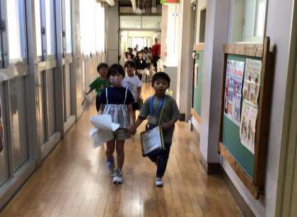 1年生に学校案内をしました。何度もシュミレーションしたので、スムーズに案内できました。