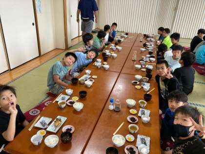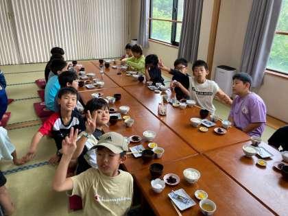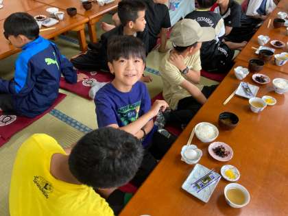 まずは朝ご飯です。今日もご飯のおかわり隊が活躍しています。