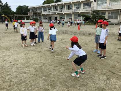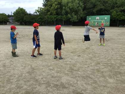 大縄を行いました。 声をかけ合いながら、頑張っていました。