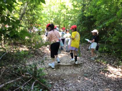 生き物を探しにみなみ山や運動場のまわりを探しました。