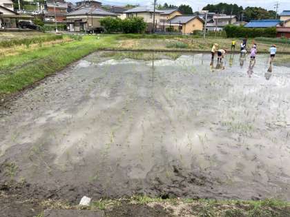 各クラス、自分たちで立てた作戦はうまくできたでしょうか。田んぼには、苗が生き生きと立っています。