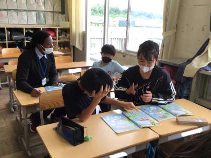 ペアで天気の言い方をクイズに出しました。