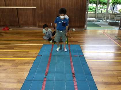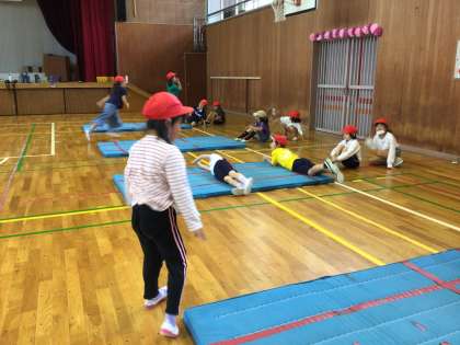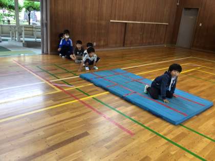 マット運動を行いました。 一生懸命頑張っています。