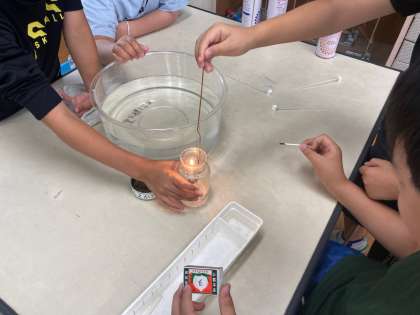 空気の中で、ものを燃やすことのできる気体を調べました。