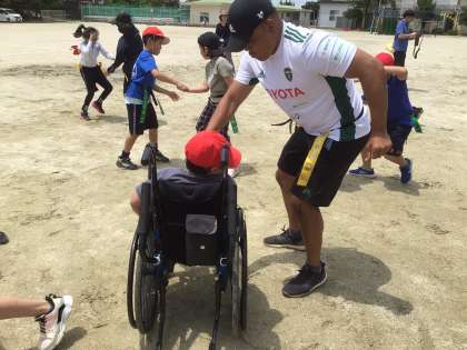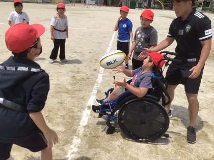 タグラグビーを教えるために中山小を訪問してくださいました。