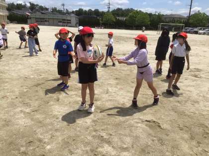 ラグビーボールのパス練習やタグラグビーを楽しむことができました。