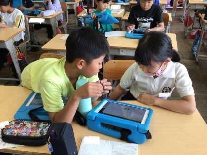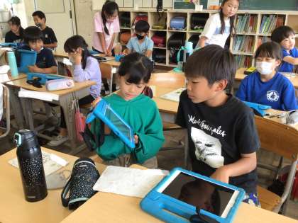 一人1テーマを決めて、調べ学習を進めています。どこまで進んでいるか、調べたことをペアで話しました。
