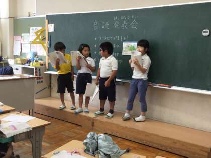 動きをつけた音読発表会をしました。どの班も工夫を凝らした発表でした。