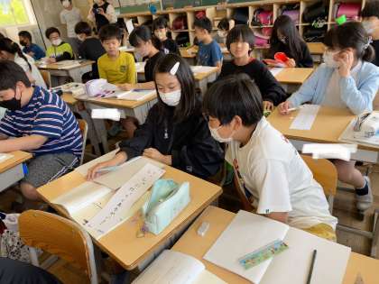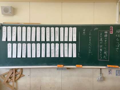 物語の中から印象に残った一文を選び、短冊に書いてペアで共有しました。
