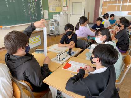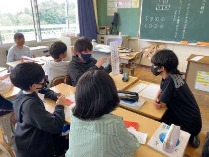 選んだ一文をもとに、登場人物の人間関係の変化をグループで話し合いました。