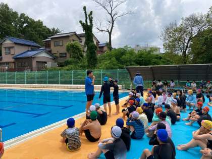 月曜日に予定されていたプール開きを実施しました。 バディの確認の仕方から振り返りました。