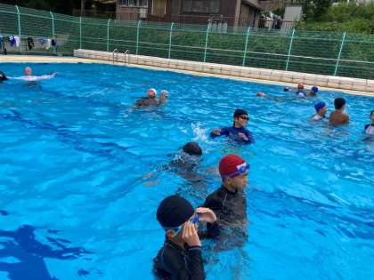 時々、バディを確認しながら、今年初めてのプールを楽しみました。