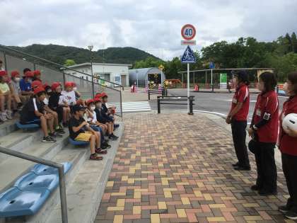 自転車の安全な乗り方について学びました。Nファミの方にも協力していただき、正しい走行練習をしました。その1