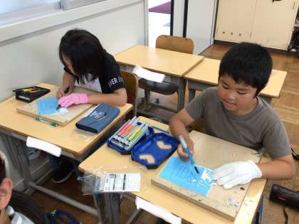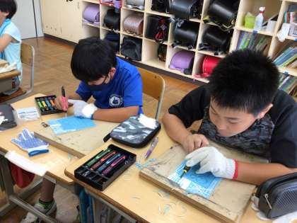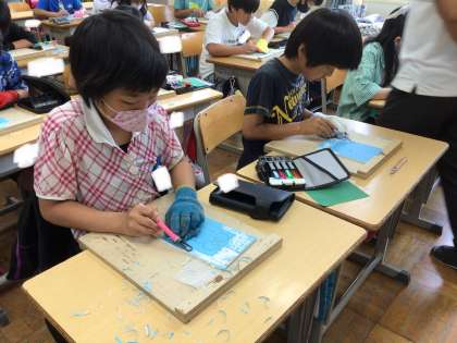 講師の方に来ていただき、彫刻刀の使い方について学習しました。