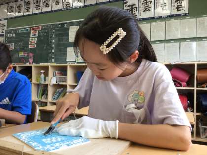講師の方をお招きし、彫刻刀の導入授業を行いました。 安全で正しい使い方を学びました。 その2