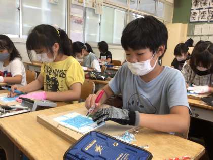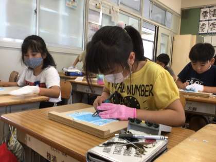 講師の方をお招きし、彫刻刀の導入授業を行いました。 安全で正しい使い方を学びました。 その4