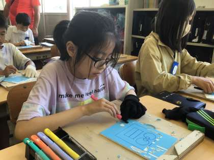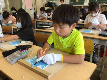講師の方を招き、彫刻刀の導入授業を行いました。その3