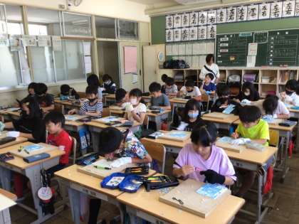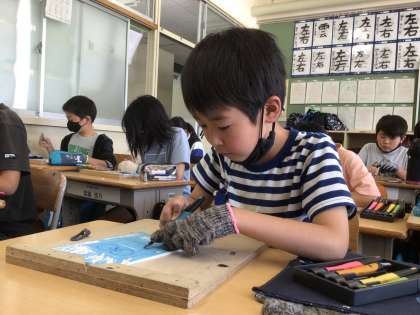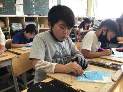 講師の方を招き、彫刻刀の導入授業を行いました。その4