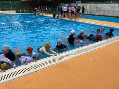 コースに分かれて、練習しています。 オープンコースでは、けのびの浮き姿勢を意識付けしました。