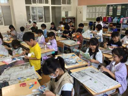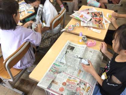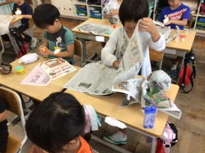 思い思いにやぶったり、ぐしゃぐしゃにしたり、体に巻いたり、素敵な作品ができました。