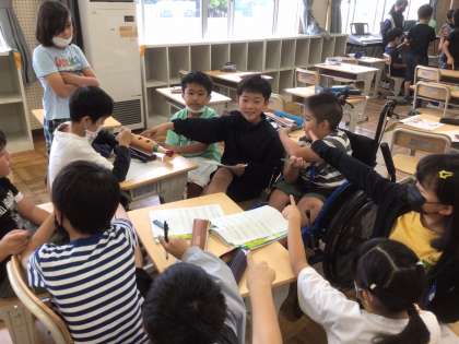 7・8・9・10組 交流学級の友だちと仲良く協力(4年生音楽)