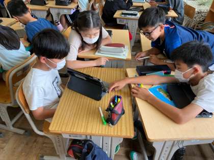 台風スライドをお互いに発表し合いました。
