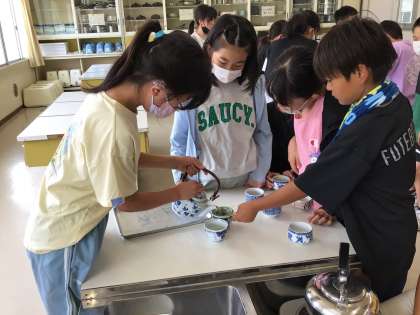 7・8・9・10組 おいしいお茶が入りました(5年生家庭科)
