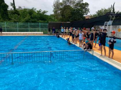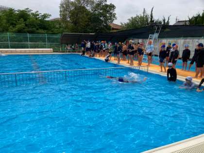 中間記録会をしました。 初めより長く泳ぐことができました。