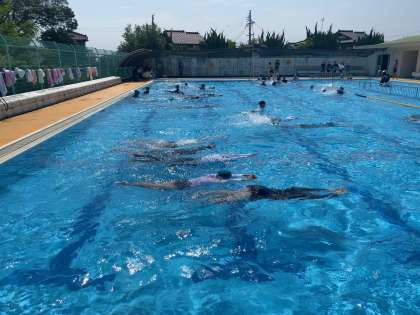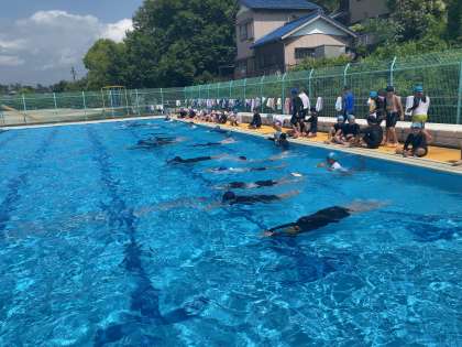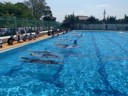 すいすいコースでは、正しい泳ぎ方で25mを泳ぐことを目標にしています。