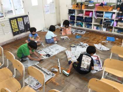 新聞紙と仲良しでグループ活動を楽しくしました♪