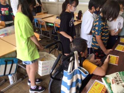 今回の授業では、子供たちにとって身近なものを購入する活動から