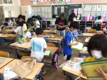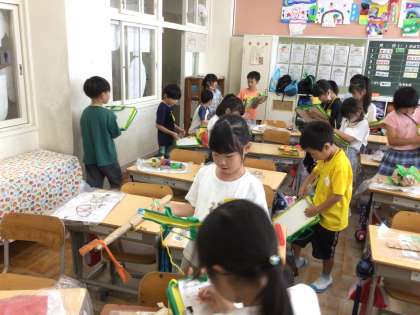 くしゃくしゃぎゅっの鑑賞会をしました。 友達の作品の素敵なところをたくさん見つけられました。