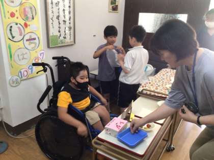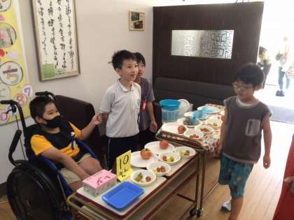 7・8・9・10組 「やさいいちば」は今日も大盛況! 公開日 2023/07/07 更新日 2023/07/07 各学年から 今週最後の「やさいいちば」 今日も開店早々から大盛況でした。 特に今回は、3年生の福祉実践教室のために 来校してくださった講師の先生方も 「美味しそうだね」と購入してくださり あっという間に完売しました。 来週も「やさいいちば」を開店します。 1回目の成果を生かして 2回目の当番で、さらにお客さんが笑顔になる応対ができるといいなと思います。