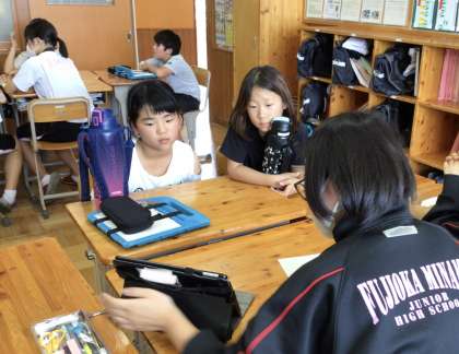 藤岡南中学校の3年生とペアを組んで、発表を聞いたり、困っていることを相談したりしました。