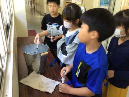 とじこめた水に力を加えると、体積がどうなるのか実験しました。