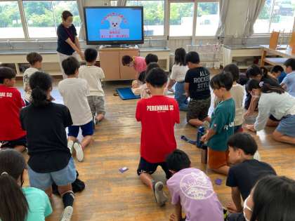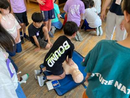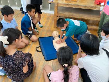応急手当講習で、胸骨圧迫やAEDについて体験しながら学びました。