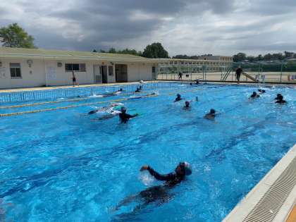 一週間ぶりのプールで、なかなか入れずに溜まったストレスを発散していました。