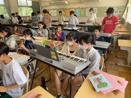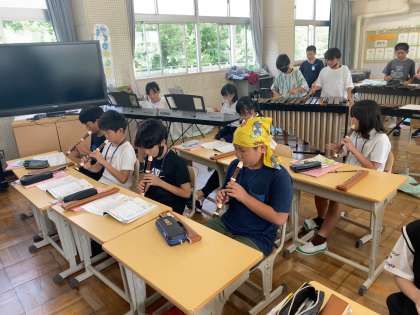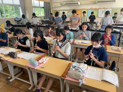 6年 音楽 ラバーズコンチェルト1 公開日 2023/07/13 更新日 2023/07/13 各学年から 2組でも演奏会がありました。最初の演奏よりも音程がうまくとれていて、練習した成果が表れていました。