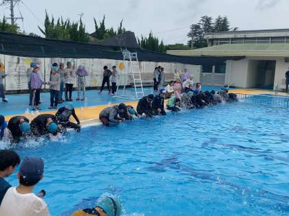 6年 着衣泳講習会3 公開日 2023/07/13 更新日 2023/07/13 各学年から 無事に行うことができました。体育館で講義を聞いた後、実際にプールで講習を受けました。ペットボトルを使って上手にぷかぷかと浮いていました。準備をしてくださり、ありがとうございました。