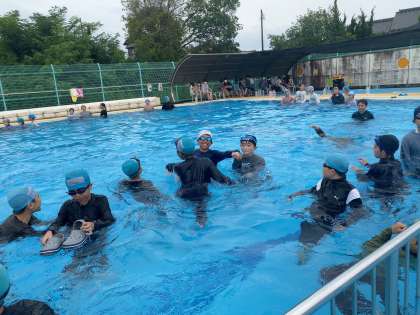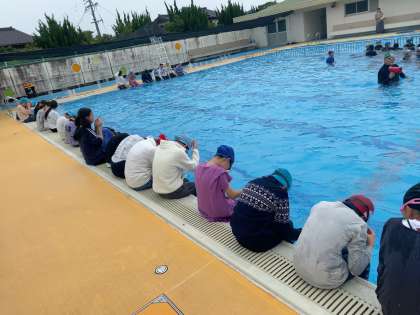 6年 着衣泳講習会5 公開日 2023/07/13 更新日 2023/07/13 各学年から 無事に行うことができました。体育館で講義を聞いた後、実際にプールで講習を受けました。ペットボトルを使って上手にぷかぷかと浮いていました。準備をしてくださり、ありがとうございました。